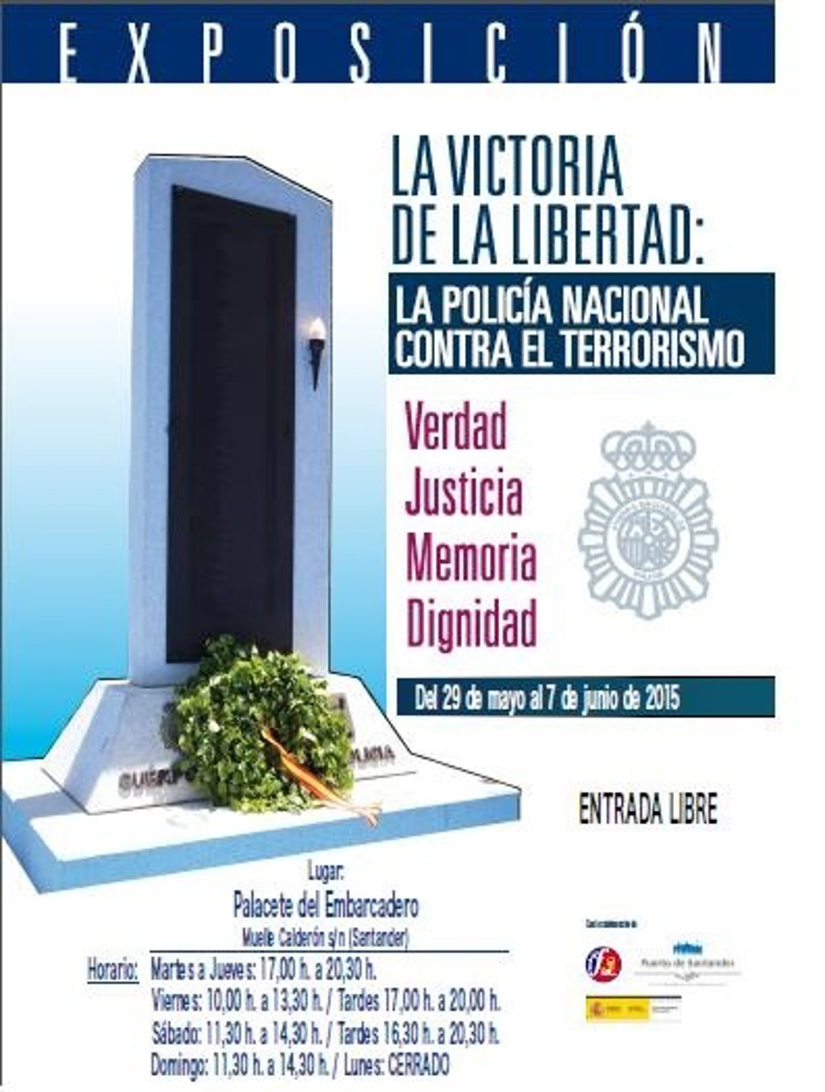 La inauguración de la muestra, que lleva por título 'La Victoria de la Libertad: la Policía Nacional contra el Terrorismo', será este viernes, a partir de las 12.00 horas, y a ella acudirá el delegado del Gobierno en Cantabria, Samuel Ruiz, acompañado por el Jefe Superior de Policía en la comunidad autónoma, Jaime Velayos.