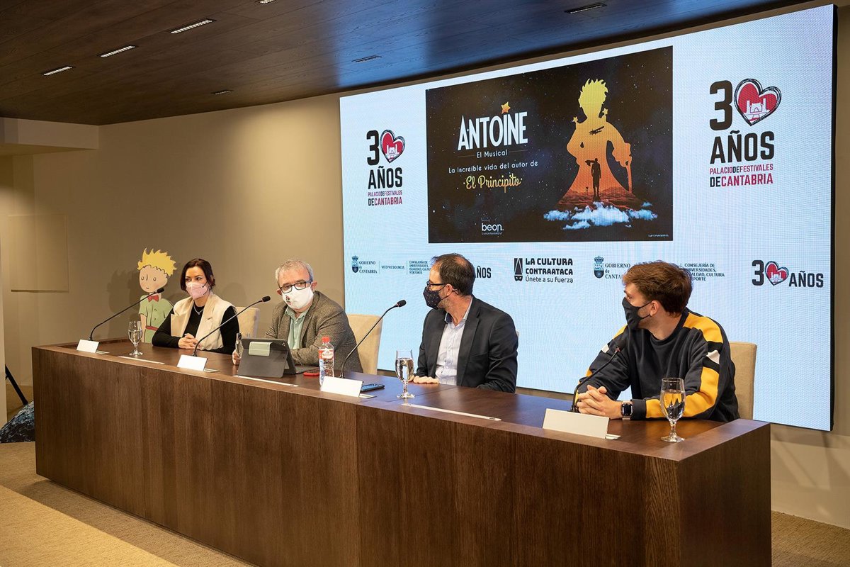 El musical 'Antoine', del director Ignasi Vidal, ha sido presentado este viernes en rueda de prensa por el responsable de programación del Palacio, Carlos Troyano; el director general corporativo de la productora del musical, beon. Worldwide, Luis Gandiaga; el actor Jan Forrellat, que interpreta al Principito; y la actriz Lorena Calero, con varios papeles en la obra.