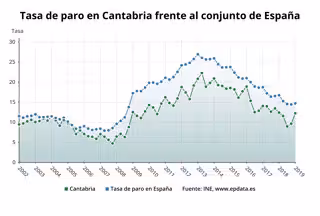 Este repunte trimestral de paro en Cantabria contrasta con un leve descenso del interanual, que fue del -1,6%, diez puntos inferior al medio de España (-11,6%), y equivalente a 500 personas menos en las listas del desempleo que las había en el primer trimestre de 2018.