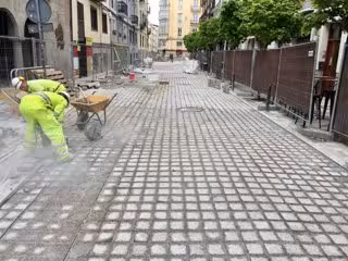 Los trabajos suponen la elevación del firme para dejarlo al mismo nivel de las aceras. La nueva calzada está diseñada a base de adoquín de granito tipo rosa Porriño, colocadas sobre base de hormigón, y en las aceras se mantendrá el pavimento actual.