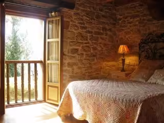Vista interior de una habitación de hotel rural para publicitar e incentivar el turismo rural y las pernoctaciones casuales. - HOTELES CON ENCANTO - Archivo