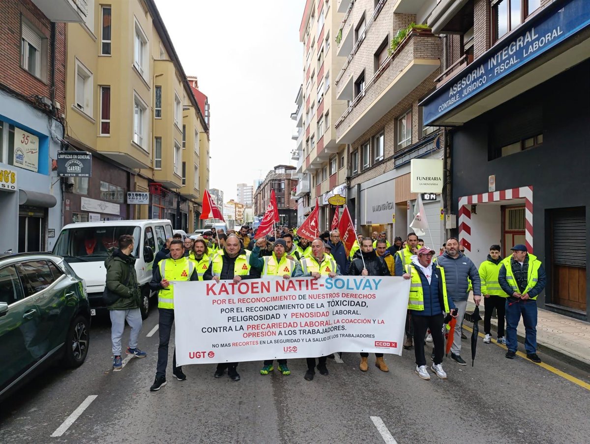 Imagen de una manifestación de la plantilla de Katoen Natie, empresa concesionaria del servicio de logística de la fábrica de Solvay - UGT