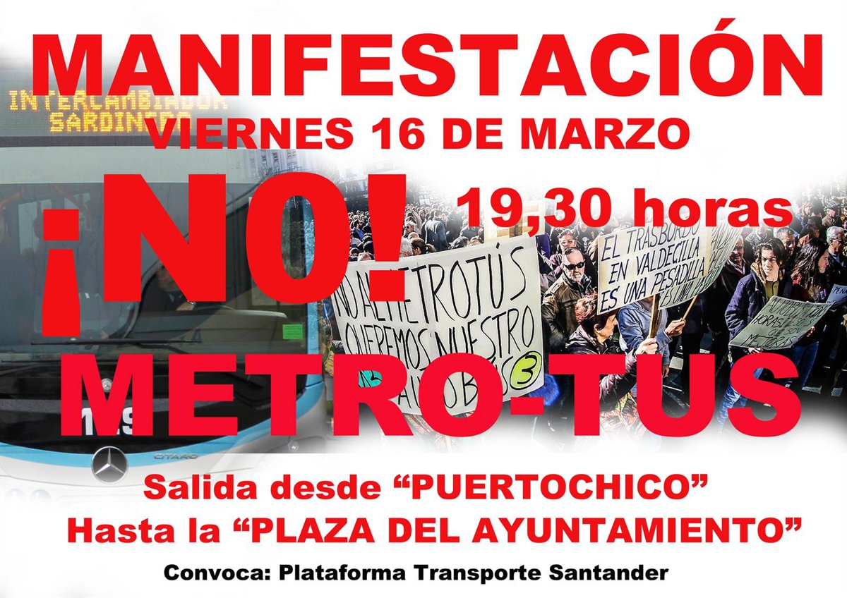 La plataforma, que además puso en marcha una recogida de firmas contra el Metro-TUS que ya suma más de 10.000 rúbricas, ha pedido a quienes asistan a la manifestación que lleven pancartas para mostrar lo que piensan sobre este sistema de transporte y también que, para hacerse oír, lleven "silbatos, panderetas, tambores..." porque la movilización se pretende concluir con "una sonora cacerolada" en la plaza del Ayuntamiento.