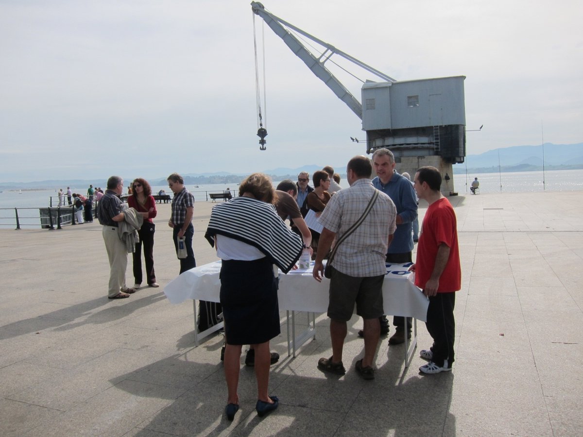 La recogida de firmas ha tenido lugar en el Muelle Albareda, donde se ha celebrado la concentración que Deba convoca los primeros domingos de mes, y en el que han vuelto a manifestar su rechazo tanto a este proyecto como a la ubicación del Centro Botín.