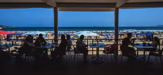 Turistas en la terraza de un restaurante en la Primera playa de El Sardinero, a 10 de agosto de 2025, en Santander, Cantabria (España). - Nacho Cubero - Europa Press