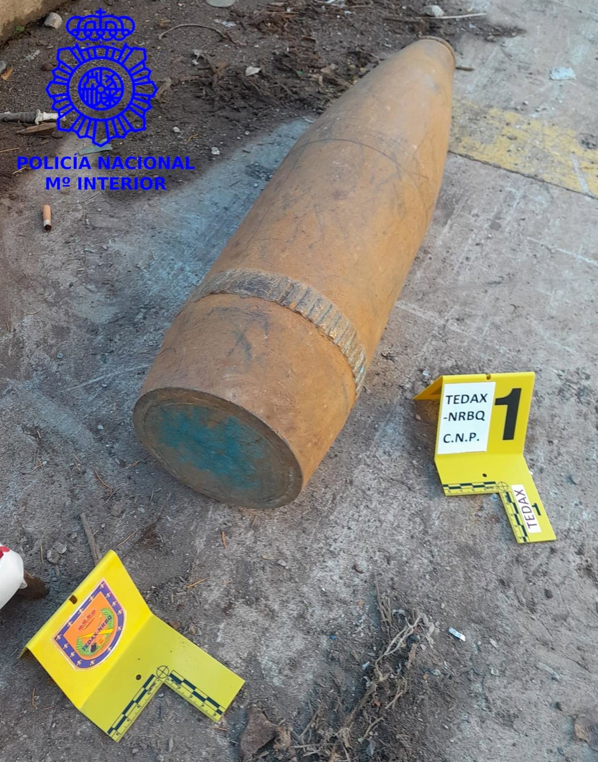 Los Técnicos Especialistas en Desactivación de Artefactos Explosivos (TEDAX-NRBQ) determinaron que se trataba de un proyectil de artillería de instrucción ya disparado, por lo que procedieron a su retirada y traslado para su examen en dependencias policiales.