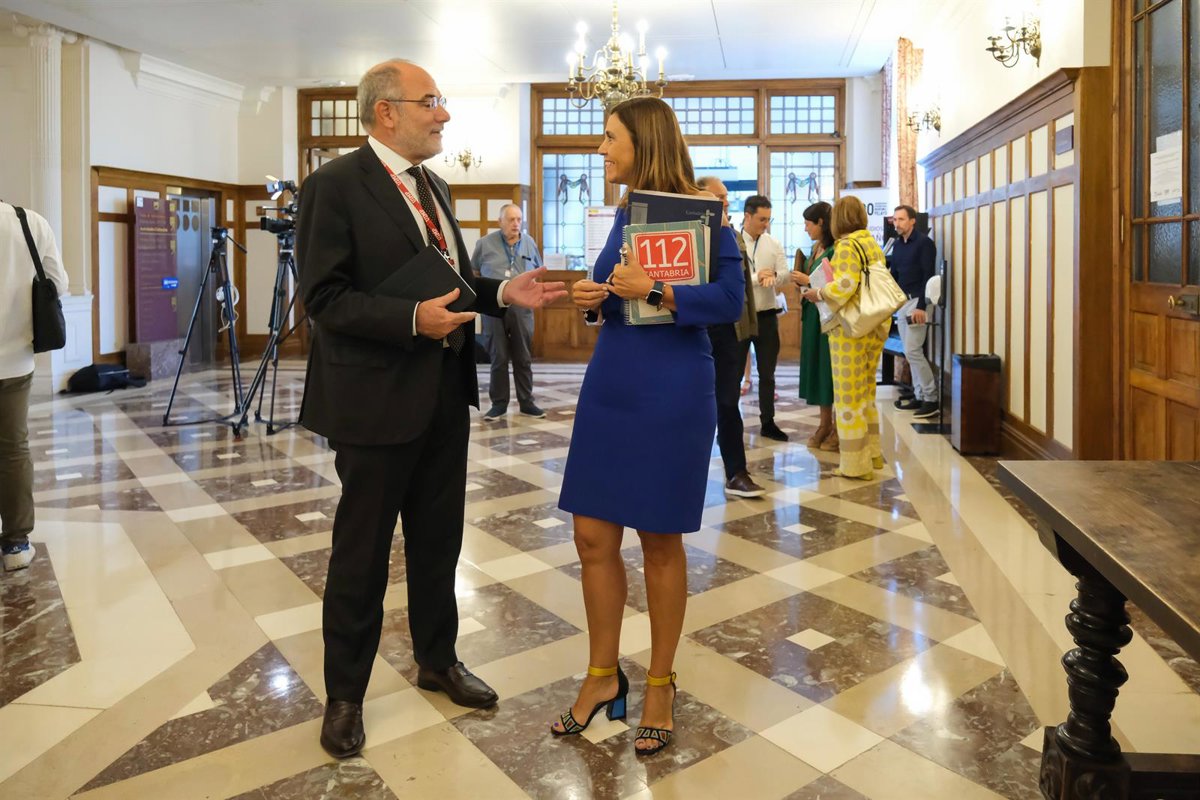 El portavoz y director de comunicación del Parlamento y la consejera de Acción Exterior han estado acompañados en la rueda de prensa por la directora de la Oficina del Gobierno de Cantabria en Bruselas, Inmaculada Valencia.