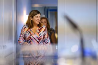 La presidenta del PP de Cantabria, María José Sáenz de Buruaga, antes de comparecer en rueda de prensa - PP