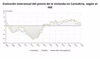 El precio de la vivienda subió en Cantabria un 1% en el primer trimestre del año en relación al mismo periodo del año anterior, el segundo menor incremento de todas las comunidades y 2,2 puntos menos de la media nacional que se incrementó un 3,2%, según el Índice de Precios de Vivienda (IPV) del Instituto Nacional de Estadística (INE) publicado este martes.