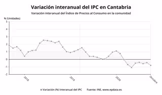 De este modo, en el acumulado del año, los precios han caído en Cantabria un 1,2%, lastrados por el transporte (-6,8%), vestido y calzado (-4,6%), las comunicaciones (-3,7%) y la vivienda (-2,3%).