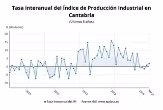 Tasa interanual de producción industrial de Cantabria - EPDATA