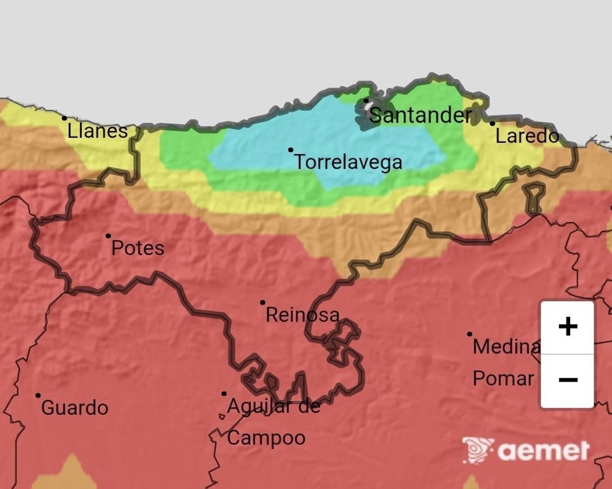 Y es que la zona de Liébana, el centro de la región, el Valle de Villaverde y la Cantabria del Ebro están hasta las 20.00 horas de este jueves en aviso amarillo (riesgo) por temperaturas máximas de hasta 34 grados.