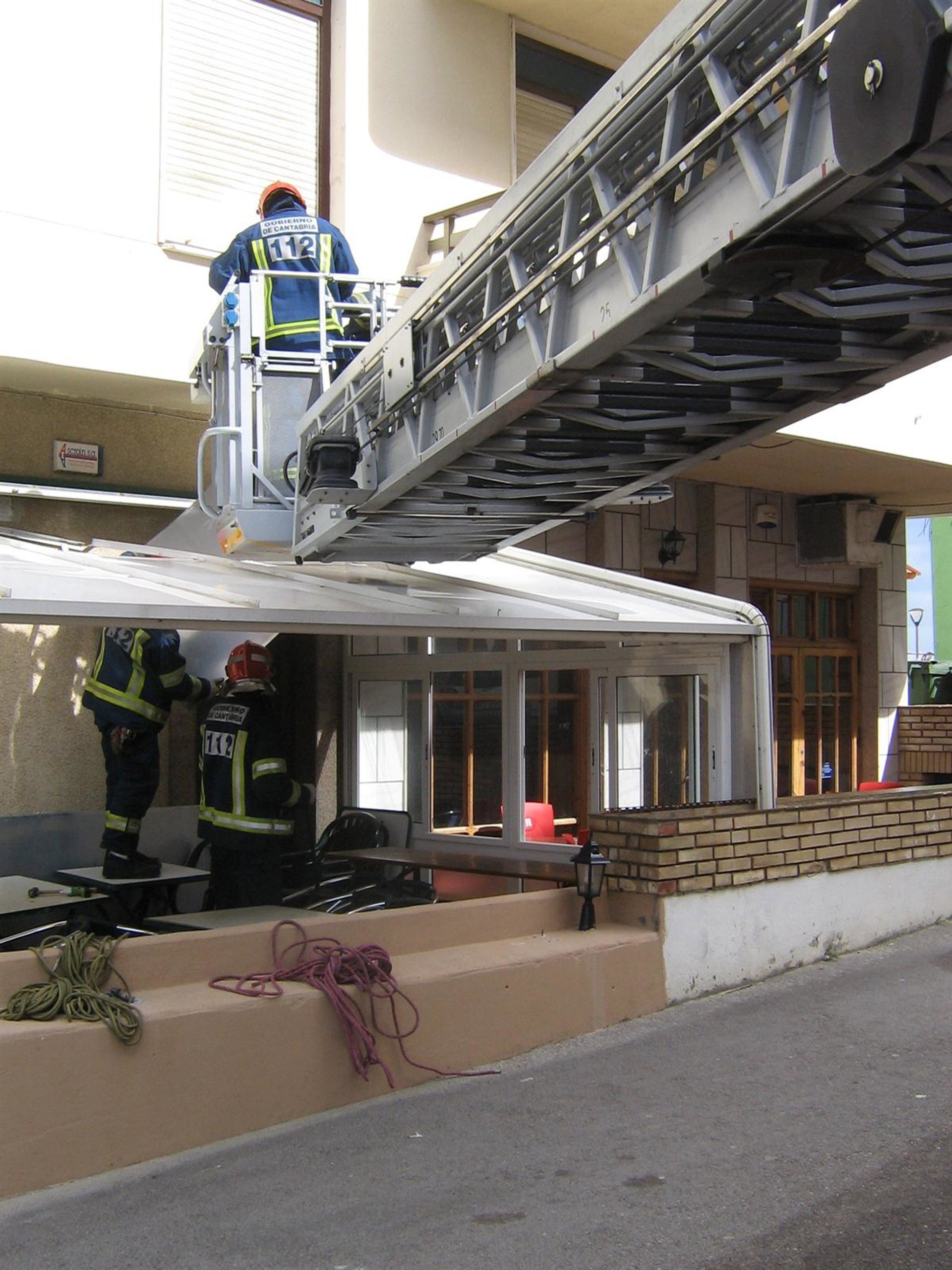 Los bomberos del parque de Laredo, por su parte, tuvieron que retiran una estructura metálica en Isla, para que no se viera afectada por los fuertes vientos.