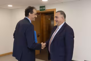 El consejero de Fomento, Ordenación del Territorio y Medio Ambiente, Roberto Media, recibe al alcalde de Alfoz de Lloredo. - CRISTINA SANTIAGO PONTONES/GOBIERNO DE CANTABRIA