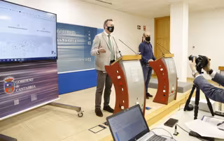 El Consejero De Desarrollo Rural, Ganadería, Pesca, Alimentación Y Medio Ambiente, Guillermo Blanco, Acompañado De Ignacio Cloux, Técnico De Red Cambera, Presenta, En Rueda De Prensa, El Balance Del Proyecto Ríos En 2020. - LARA REVILLA/GOBIERNO DE CANTABRIA
