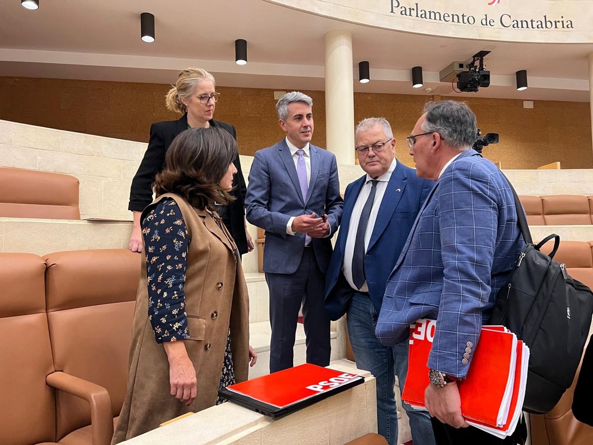 El portavoz del PSOE en el Parlamento de Cantabria, Pablo Zuloaga (centro), y diputados socialistas - PSOE