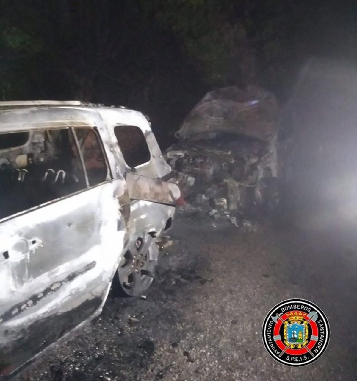 Dos de los vehículos quemados en Piélagos - TWITTER BOMBEROS DE SANTANDER