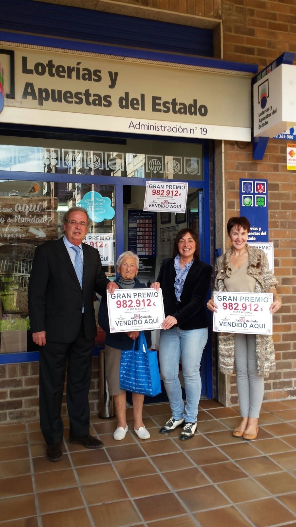 Así, el propietario de un boleto sellado en la calle Cardenal Herrera Oria 31, en el barrio de Cazoña de Santander, acertante del 'Pleno al Quince' en la décimo sexta jornada de la Quiniela, cobrará, con el acumulado de 'Catorce', un total de 982.912,11 euros.