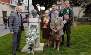 La obra escultórica está situada en la Plaza de Pombo, el escenario donde comenzó a practicarse el balompié en Santander.