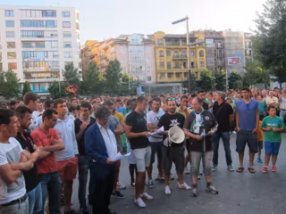 A continuación se han dirigido a la Plaza del Ayuntamiento donde se ha leído el comunicado, interrumpido en algunas ocasiones por aplausos, y donde, a modo de conclusión, la afición ha hecho un pequeño pasillo para despedir entre aplausos a los jugadores.