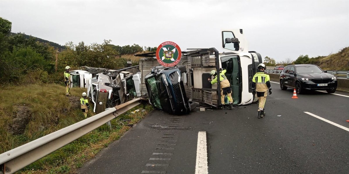 Los dos carriles de la autovía A-8 en la zona de Ontón sentido Bilbao han sido reabiertos a la circulación tras permanecer desde primera hora de esta tarde cortados para la retirada de un camión accidentado que este sábado volcó mientras transportaba turismos y que no dejó heridos.