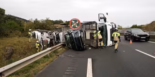 Camión volcado en la A-8 - BOMBEROS DE CASTRO URDIALES