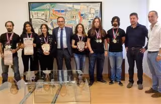 Varios miembros de la Corporación municipal en el Ayuntamiento de Torrelavega, encabezados por su alcalde, José Manuel Cruz Viadero, han recibido a la Compañía Torre de la Vega y Sala de Armas Louis XIV, radicada en el municipio, tras la medalla de oro y la de plata que ha conseguido en el Campeonato del Mundo de Esgrima Artístico celebrado reciente mente en Kolomna (Rusia) en la modalidad de conjuntos.