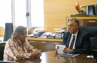 Archivo - El alcalde de Tudanca, Manuel Grande, con el consejero de Fomento, Roberto Media, en un encuentro en abril de 2024. - GOBIERNO DE CANTABRIA - Archivo