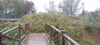 Pero además, el viento ha provocado la caída de tejas, ramas y árboles sobre la vía pública y tres farolas de la re de alumbrado público.