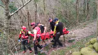 Una vez junto al grupo, han valorado y atendido a la mujer herida, y han procedido, con la ayuda de sus acompañantes, a su traslado en camilla hasta la aeronave.