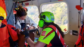 Senderista rescatada en el helicóptero del Gobierno de Cantabria tras quedar enriscada en el Monte Candina - 112