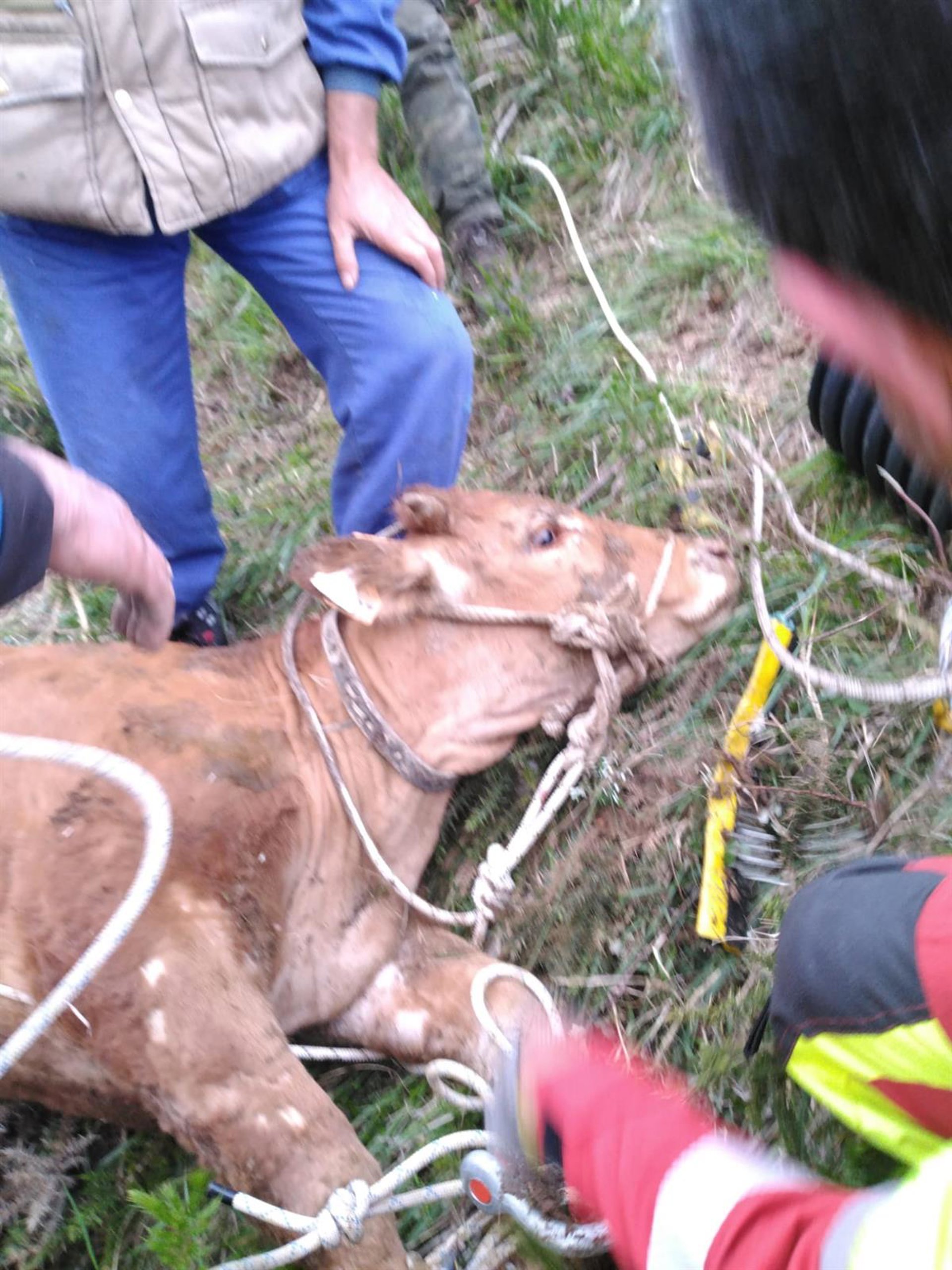 Así, los bomberos consiguieron izar al animal, que se encontraba en buen estado, hasta una zona segura.