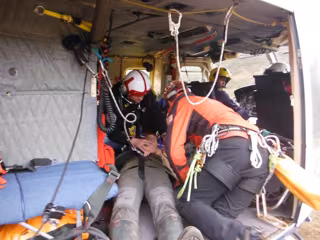 A la llegada del helicóptero ha podido tomar tierra, mediante una operación de grúa confinada entre árboles, un técnico de rescate del Gobierno de Cantabria, que ha inmovilizado la extremidad afectada del herido y le ha ayudado a desplazarse hasta un claro que ha permitido subirle a la aeronave, de nuevo con una operación de grúa, en un doble izado.