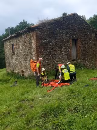 Dado que la cabaña se encuentra en un lugar de difícil acceso, lo que dificultaba el traslado del accidentado en camilla, se dio aviso al helicóptero, que ya estaba operativo. Una vez en el lugar, el equipo de el aeronave inmovilizó al afectado y le trasladó hasta el aeropuerto Seve Ballesteros, donde esperaba una ambulancia para ingresarle en el Hospital Valdecilla.