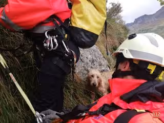 Bomberos del Servicio de Emergencias 112 del Gobierno de Cantabria, pertenecientes al parque de Tama, han rescatado este jueves a un perro que llevaba dos días atrapado en una zona rocosa de Bejes, en Cillorigo de Liébana.