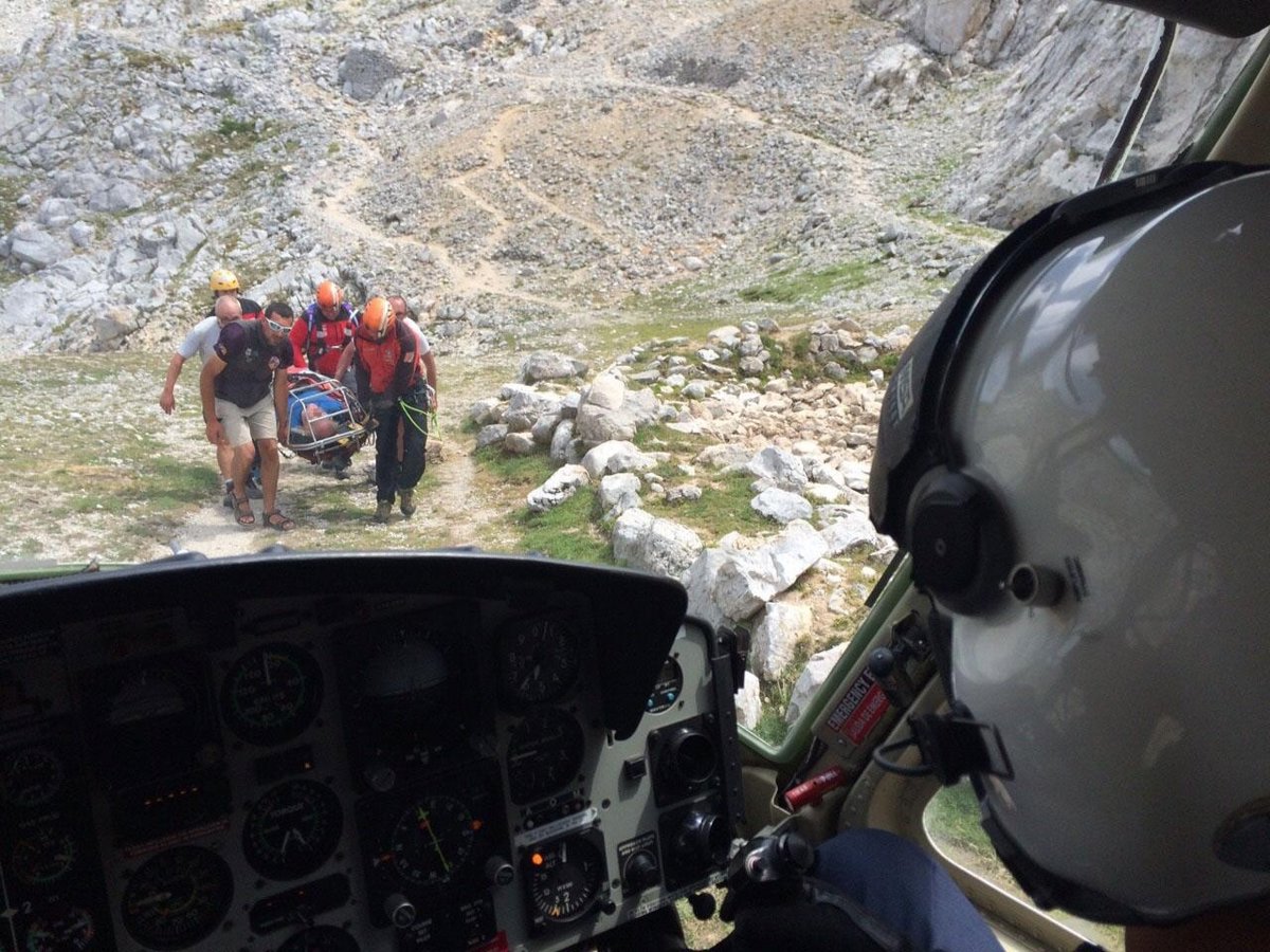 A la llegada del helicóptero, que ha aterrizado sobre el terreno a escasos metros del grupo, un técnico de rescate de la Dirección General de Protección Civil del Gobierno de Cantabria, y el médico del equipo de intervención helitransportado han atendido al espeleólogo, al que han inmovilizado la pierna afectada y han porteado hasta la aeronave en camilla de rescate, con la ayuda de compañeros y del guarda del refugio.