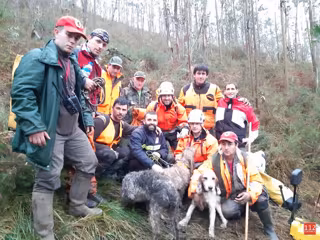Bomberos del 112 han rescatado este domingo en "perfecto estado" a tres perros de caza que habían caído en una torca angosta de 10 metros de longitud en el monte Caviña (Valdáliga) cuando seguían el rastro de un jabalí.