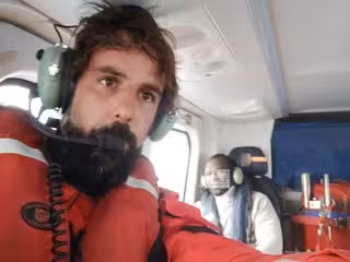Cuando la aeronave llegó hasta el barco pejino, el tripulante fue rescatado en una especie de jaula. Primero descendió desde el helicóptero hasta la embarcación el rescatador, que se encargó de introducir a la víctima en el habitáculo preparado para este tipo de operaciones.