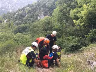 El equipo del helicóptero medicalizado del Gobierno de Cantabria y bomberos del Servicio de Emergencias 112 del Ejecutivo, han rescatado a primera hora de esta tarde a una senderista, de 41 años y procedente de Granada, accidentada en la ruta que une La Hermida con el Collado de Osina, en Peñarrubia.