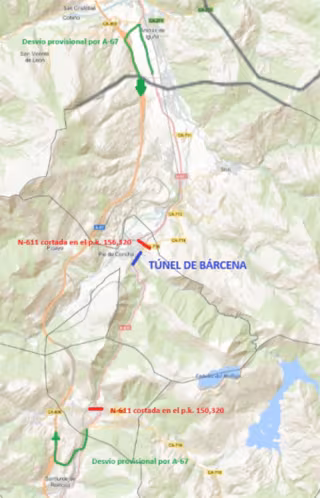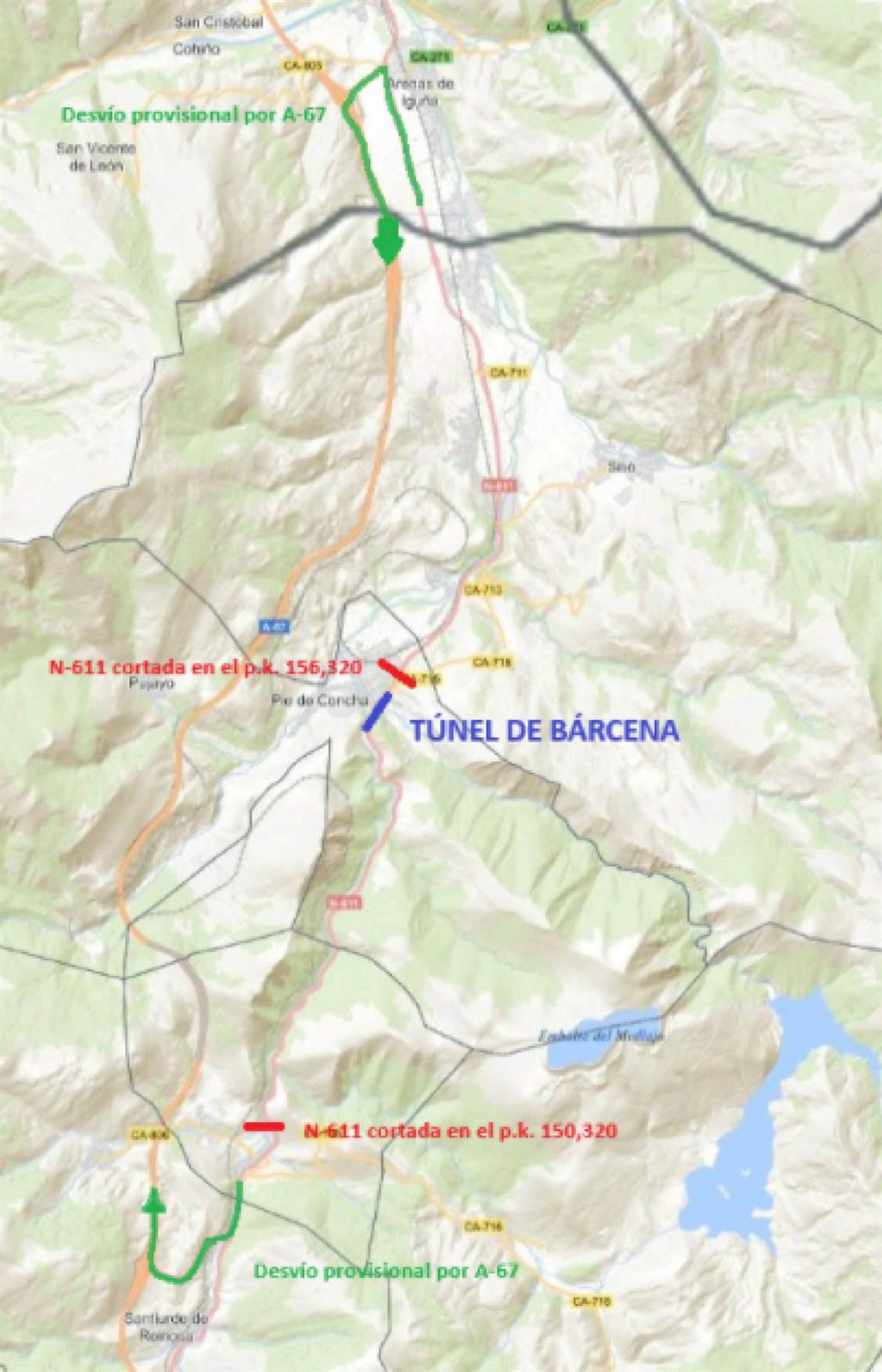 Este corte no afectará a aquellos usuarios que, partiendo de la población de Bárcena de Pie de Concha se dirijan hacia el norte por la N-611. Ni a aquellos usuarios que, desde Ventorrillo, vayan hacia el sur por la N-611.