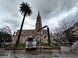 Tareas de retirada de una palmera centenaria junto a la Iglesia de La Asunción de Torrelavega - AYUNTAMIENTO DE TORRELAVEGA