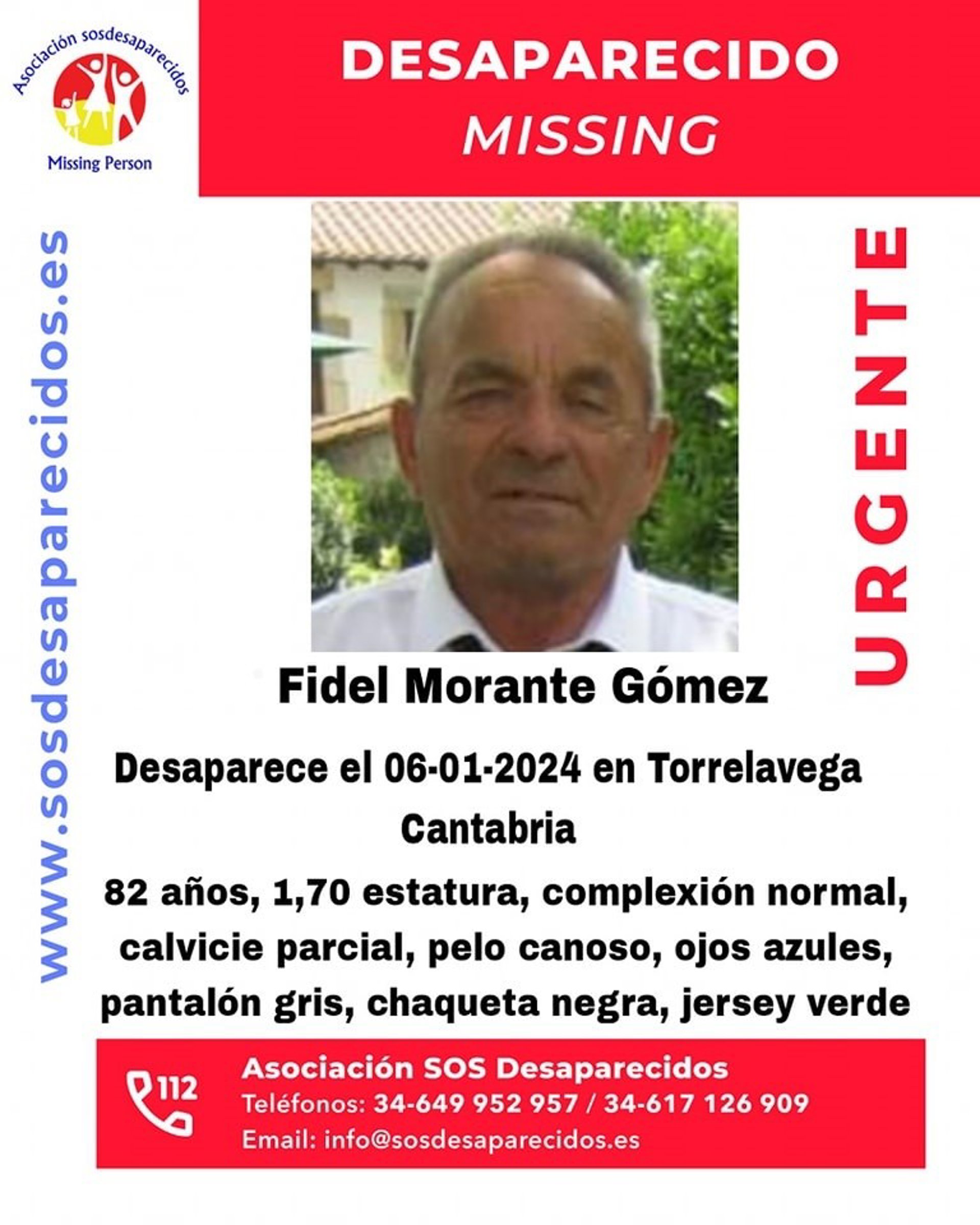 Según la asociación SOS Desaparecidos, el hombre se encontraba "desorientado" el día que desapareció y llevaba un pantalón gris, chaqueta negra y jersey verde.
