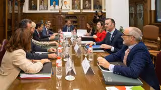 Antes del acto, el presidente, el vicepresidente y el consejero, junto con el resto de los miembros del Ejecutivo, han mantenido un encuentro con representantes del Servicio Cántabro de Salud, jefes de Servicio y de Sección, supervisores y representantes de las organizaciones sindicales, en el que han puesto de manifiesto el simbolismo de esta jornada.