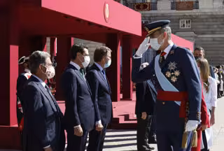 Con motivo de la pandemia de la Covid-19, la celebración se ha trasladado este año a la Plaza de la Armería del Palacio Real y se ha limitado a una mínima representación de las principales instituciones del Estado, ha indicado el Gobierno de Cantabria.