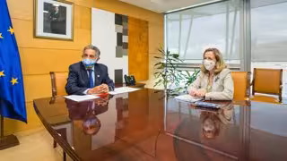 El presidente de Cantabria, Miguel Ángel Revilla, se reúne con la vicepresidenta segunda y ministra de Asuntos Económicos y Transformación Digital, Nadia Calviño. - RAÚL LUCIO/GOBIERNO DE CANTABRIA