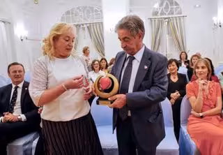 El presidente de Cantabria, Miguel Ángel Revilla, recoge el Premio Corazón 2019 de la Asociación Corazón sin Fronteras de manos de la presidenta de la entidad, Maite San Santurnino - GOBIERNO DE CANTABRIA