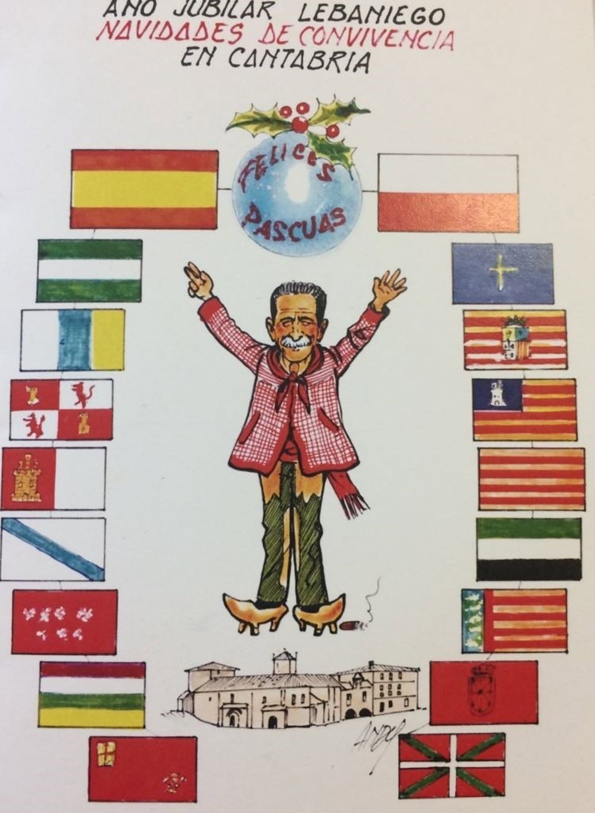 Esta Navidad no habrá villancico ni vídeo del presidente, pero sí felicitación navideña a través de una tarjeta postal en la que, bajo el texto 'Año Jubilar Lebaniego. Navidades de convivencia en Cantabria' aparece un dibujo de Revilla, de nuevo con traje de romero y albarcas, rodeado de las banderas de todas las comunidades y la española.