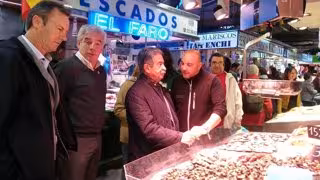 Y una pescadera ha querido regalar bocartes de Santoña a Revilla, que se ha negado a recibirlos gratis, por lo que al final se los ha llevado pero pagando el precio marcado: 2 euros.