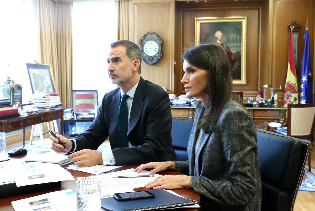 Los Reyes, Letizia y Felipe VI, durante una videoconferencia - Casa de S.M. el Rey