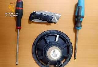 Se le encontraron herramientas y un arma blanca que podrían haber sido utilizados para los robos, así como un altavoz de vehículo.